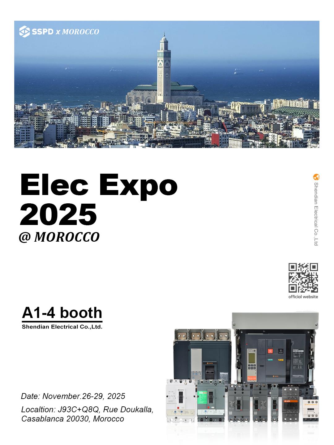Casablanca Fairs and Exhibitions Center (OFEC).At our booth, SSPD will present low-voltage electrical products including MCCBs, ACBs, Contactors, MPCBs, and MCBs.
